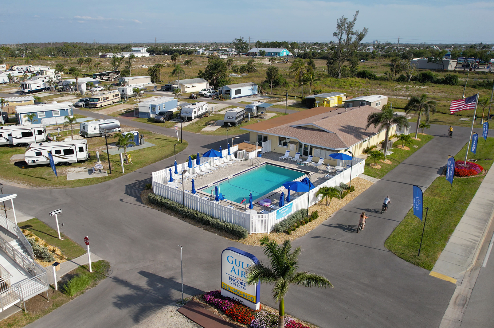 Grab your own slice of a tropical oasis at Gulf Air RV Resort. Stay a day or a lifetime in paradise. Our spacious RV sites are fully equipped with 30/50 amp service, cable TV, water and sewer. Vacation cottages also available to rent!